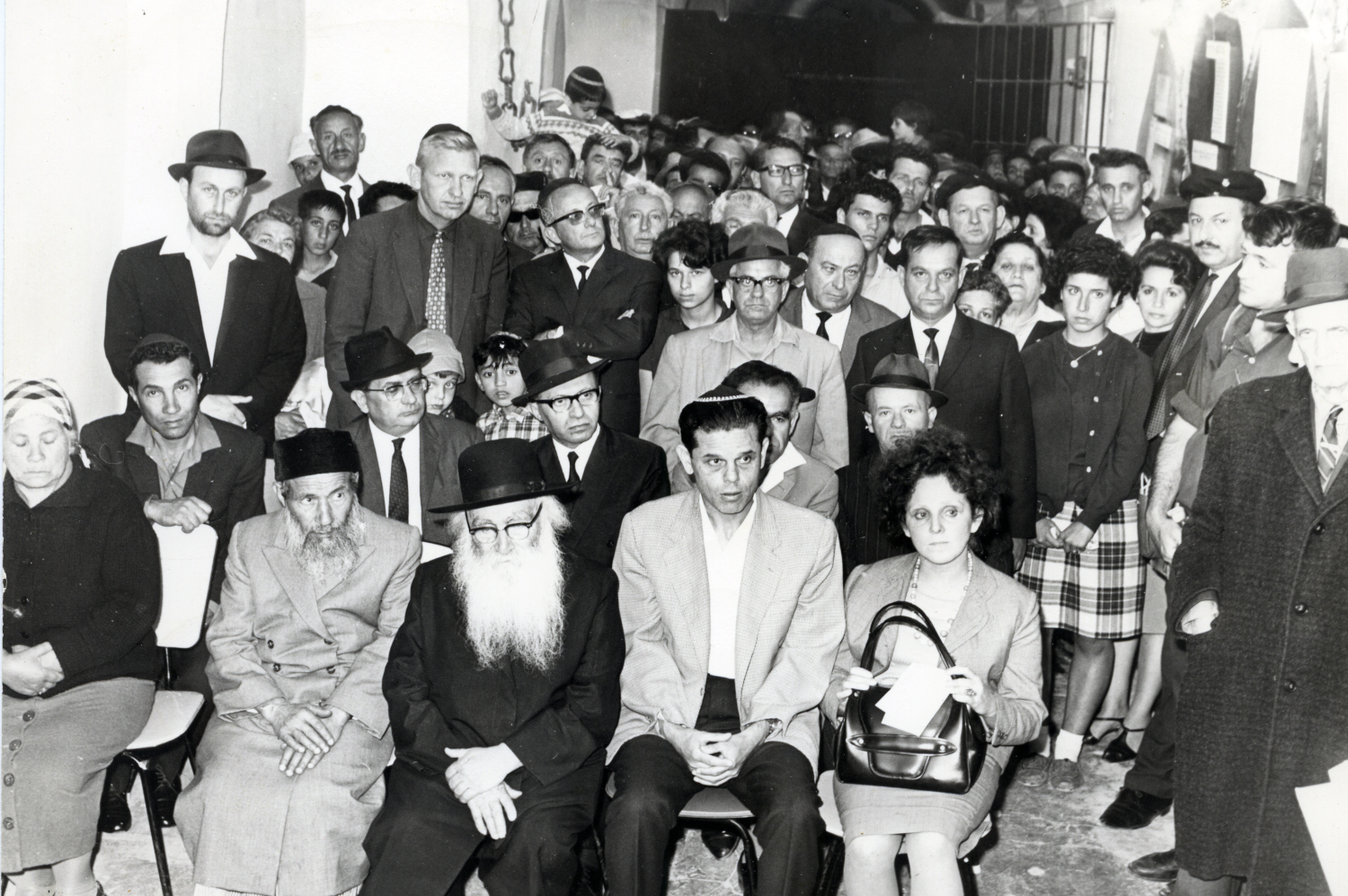 In 1967, after Menachem Begin and his party, Herut, joined the Israeli unity government, the Jerusalem Prison in the Russian Compound was restored as the "Hall of Heroism." The preceding picture shows the ceremony held on that occasion for Feinstein and Barazani. Sitting from left to right in the first row are the late Lulu Barazani, Moshe's mother, the late Chacham Avraham Barazani, Moshe's Father, the late Rabbi Aryeh Levin, the "Father of the Prisoners," My late father and Meir's older brother, Binyamin Feinstein, and the late Rachel Kramer-Rechtman, Meir's fiancée. On the second row, sitting between Rabbi Levin and my father, is the late Menachem Begin, Meir's IZL commander and the sixth prime minister of the state of Israel. The first person from the left in the second row is the late Shaul Barazani, Moshe's older brother, who was also a member of the Lehi. My late uncle Aryeh Zimerman is sitting behind Rachel Kramer-Rechtman. The second person from the left in the third row is the late Eitan Livni, who was the operations officer of the Irgun.