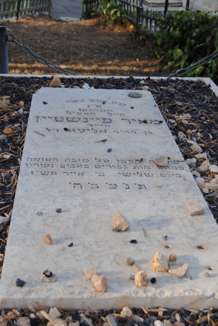 A close up view of Meir's original grave that was designed by my father, Binyamin Feinstein. My father's words, "He was sacrificed on the altar of the nation as he died a hero death at the spring of his youth," relates to my father's claim that Meir was just 17 years old and eight months during his trial by the British.