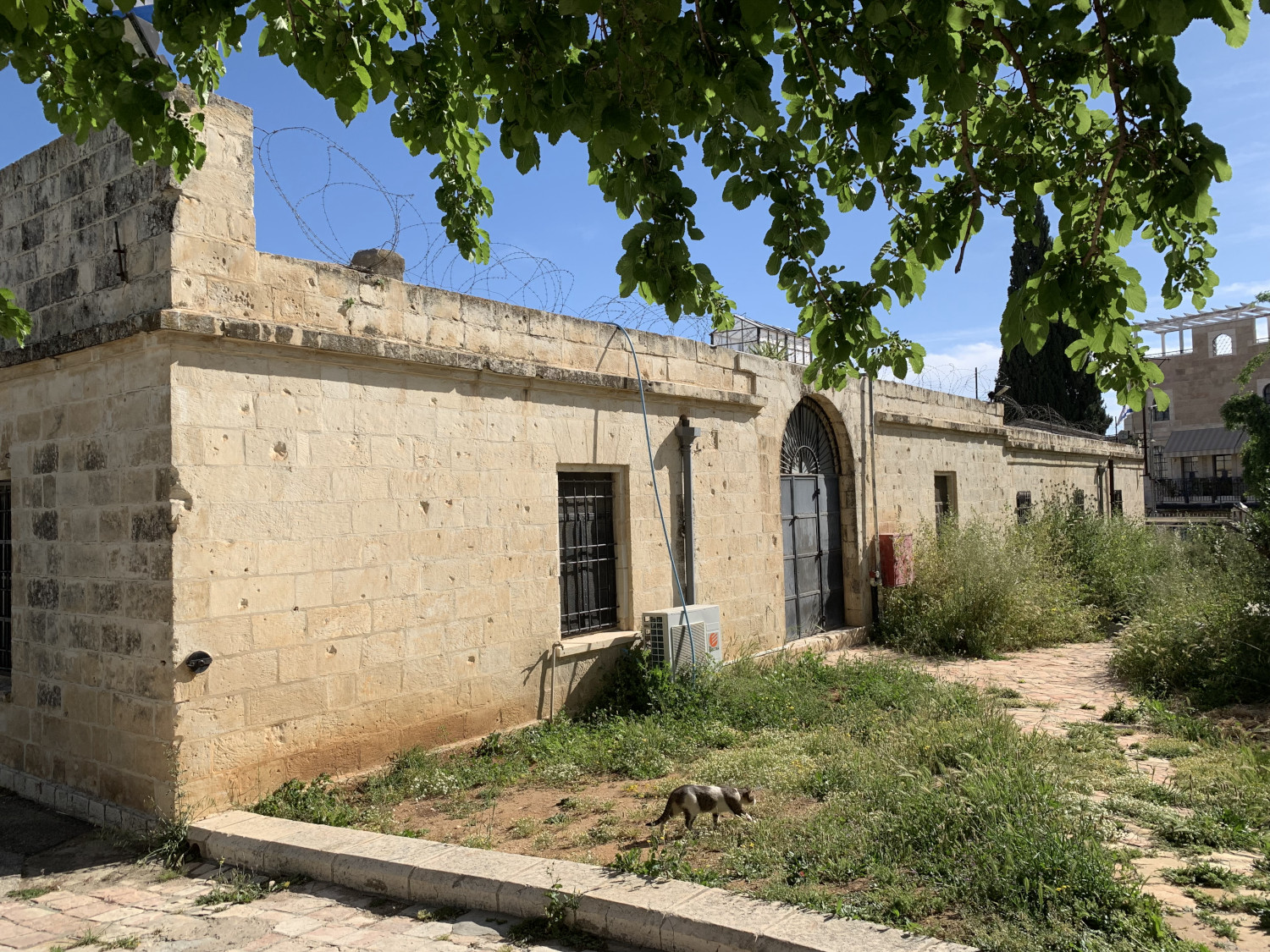 A Jerusalemite cat is strolling peacefully by the side of the prison/museum.