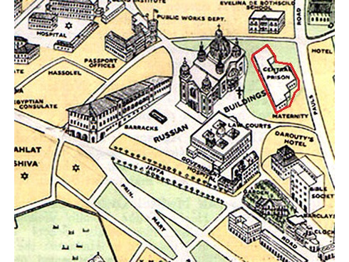 The Central Prison of Jerusalem in the west part of the Russian Compound was originally a hostel for Christian pilgrims during the early part of the 20th century. The inscription, "Marianskya Women's Hostel" written in Russian can still be seen above the entrance. A beautiful Russian church at the center of the Russian Compound gives the area a unique historical grace. When the British occupied Palestine in 1917, the Russian compound became a British security and administrative center known as "Bevingrad," and the hostel became the central prison.